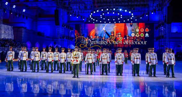 Muscat: HH Sayyid Bilarab bin Haitham Al Said presides over the 'Military Music: Oman and the World show', organised by the Royal Opera House Muscat on the occasion of the National Day.